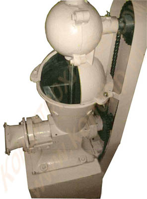 Смонтированный внутри чугунного корпуса 4 стальной сварной шнек 3 соединен со средним горизонтальным валом. Для восприятия осевого усилия, возникающего в результате нагнетания массы шнеком, предусмотрен упорный шарикоподшипник. На горизонтальном валу насажена двухрядная звездочка 12 для привода шнека.