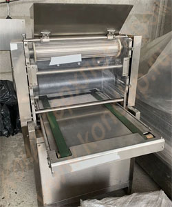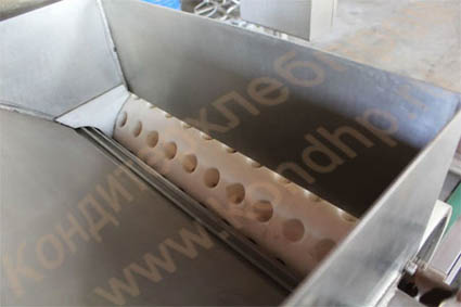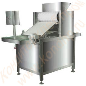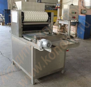 Конфетная масса загружается в бункер и подающим барабаном перемещается в зону формования, где попадает в матрицы формующего вала и уплотняется. При соприкосновении находящейся в углублениях дозы конфетной массы с верхней ветвью ленточного транспортера, она остается на конвейере в виде готового изделия, т.е. корпусов конфет, которые передаются на следующие технологические операции.