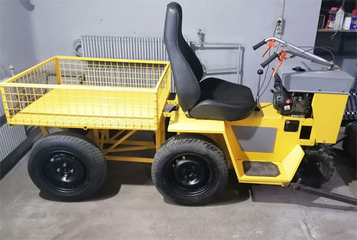 Зеленый гусеничный трактор «Сталинец», оборудован отвалом, трансмиссия - механическая, только для уборки снега. Желтый маленький трактор с прицепом - это и трактор и мини-думпер, два в одном, задумывался как садовый помощник и одновременно снегоуборщик, назначение-сад, огород, стройка, подсобное хозяйство, придомовая территория. Последний наш проект - это классический трактор, желтого цвета оборудованный фронтальным ковшом, тестируем уже год, устранили все недочеты, назначение - уборка снега, планировка местности, оснащен задней навеской и может агрегатироваться с навесным оборудованием, является наиболее универсальным среди всех представленных моделей тракторов.