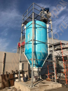 При необходимости, стеклопластиковый силос может комплектоваться металлической лестницей, площадкой для обслуживания и разгрузочным шибером, аспирационным фильтром, виброднищем.