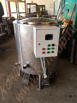 В рубашке расположен змеевик, по которому проходит пар, либо установлены ТЭНы для нагрева теплоносителя. Перемешивание продукта осуществляется мешалкой рамного типа, на которой установлены фторопластовые скребки для более равномерного перемешивания продукта.