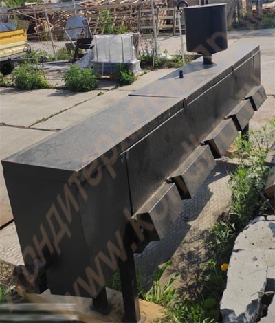 Теплообменник представляет собой типовое устройство типа „труба в трубе” или комбинацию труб, собранных из отдельных секций, соединенных калачами. По внутренней трубе прокачивается сироп, в наружную трубу подается пар. Причем пар подается в верхней точке, а конденсат отводится в нижней точке. Пространство между трубами и ограждениями заполнено минеральной ватой.