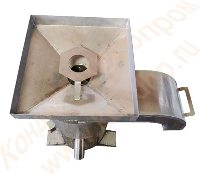 Яйца подаются в стационарное устройство через приемную воронку, где происходит их разбивание и отделение от скорлупы.